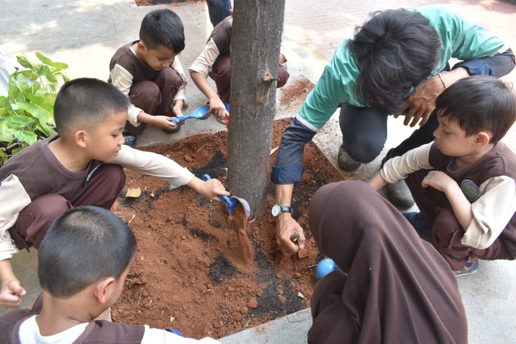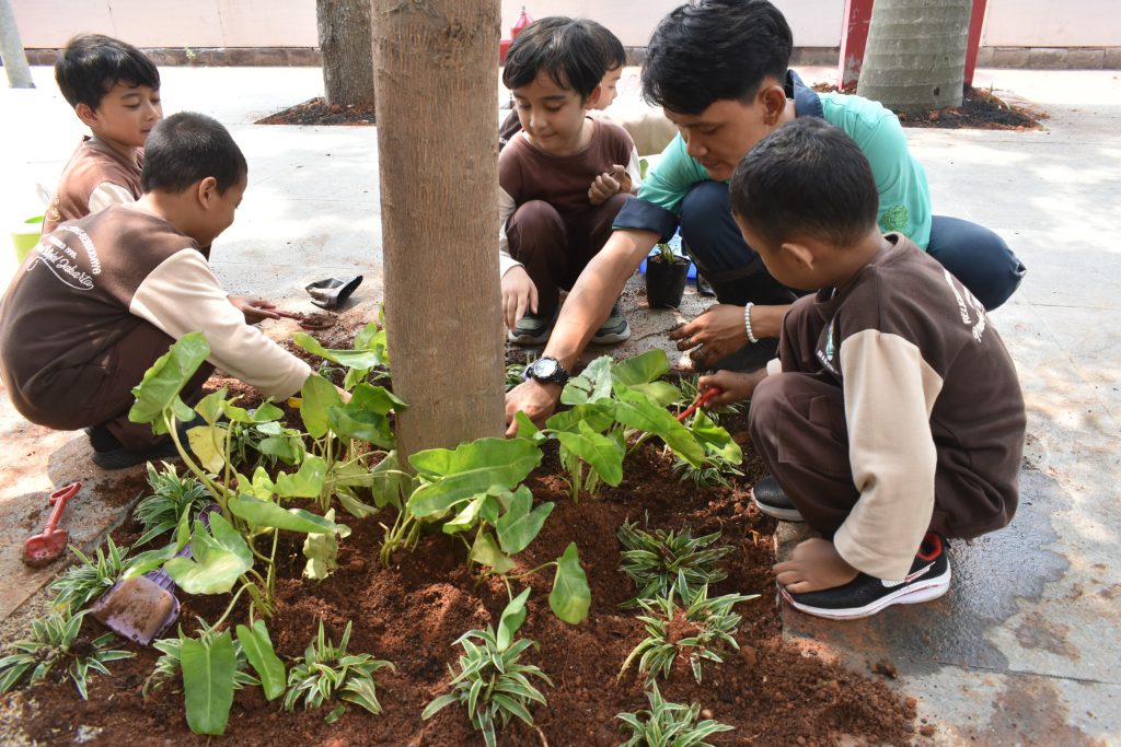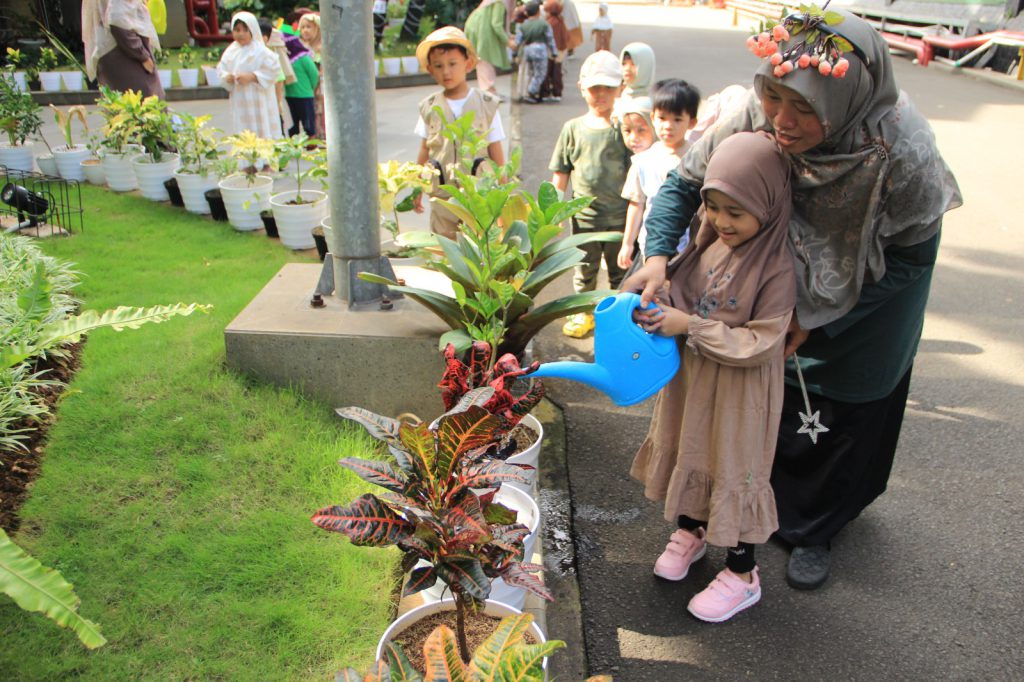 Jakarta, 12 Oktober 2025 – Siswa Kelompok Bermain (KB) dan Raudhatul Athfal (RA) mengikuti kegiatan penanaman pohon yang dirangkaikan dengan edukasi mengenai kehidupan sekolah serta penerapan gaya hidup ramah lingkungan (go green) pada Oktober 2025. Kegiatan ini bertujuan menanamkan kepedulian terhadap lingkungan sejak usia dini sekaligus mengenalkan pentingnya perilaku hidup bersih, sehat, dan berkelanjutan di lingkungan sekolah.